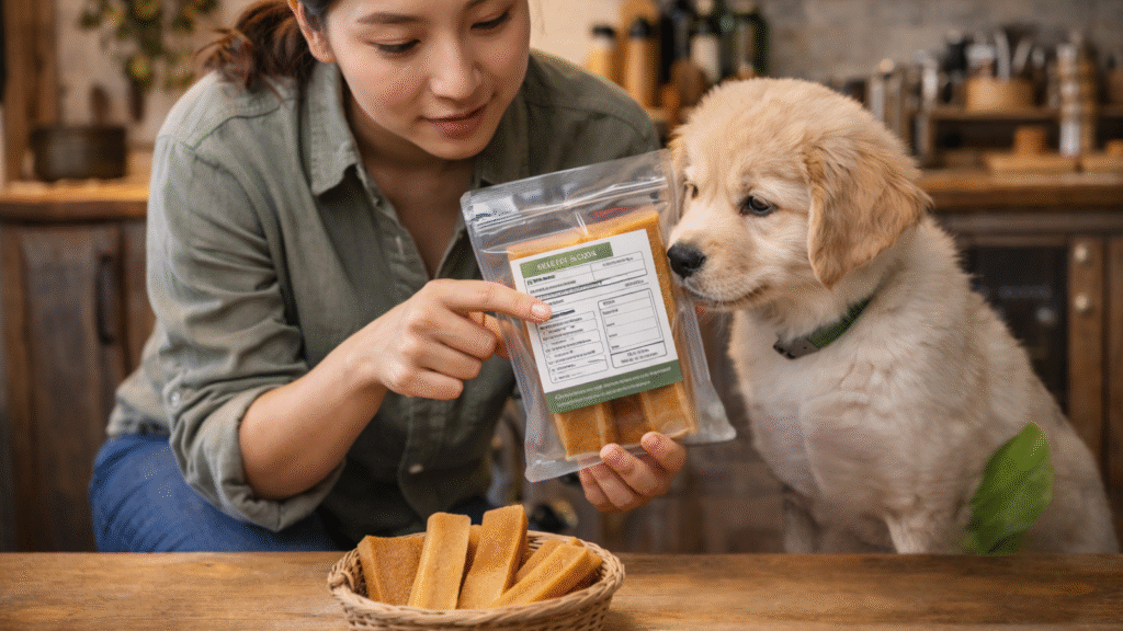The 4 label red flags for puppy-safe yak chews are heavy flavor coatings, added sugars, mystery binders, and high-odor extras (such as bacon or chicken flavoring).